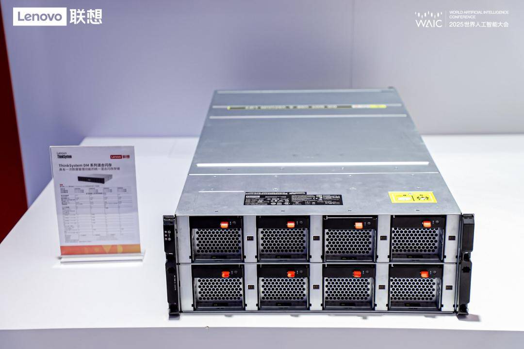 在存储领域,联想展示了ThinkSystemDM7100,该产品支持端到端的NVMe技术,可以优化企业的关键任务应用并无缝集成现有的SAN环境,显著提升数据中心效率,减少33%的延迟,为企业提供灵活、高效、安全的存储解决方案。